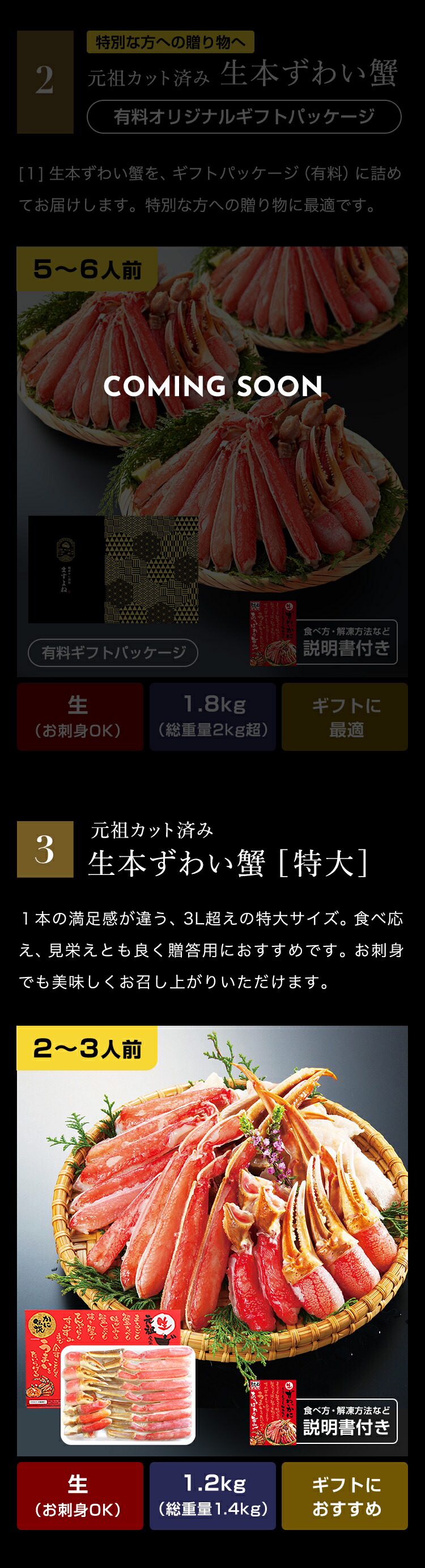 ■02.元祖カット済み生本ずわい蟹[有料パッケージ]]