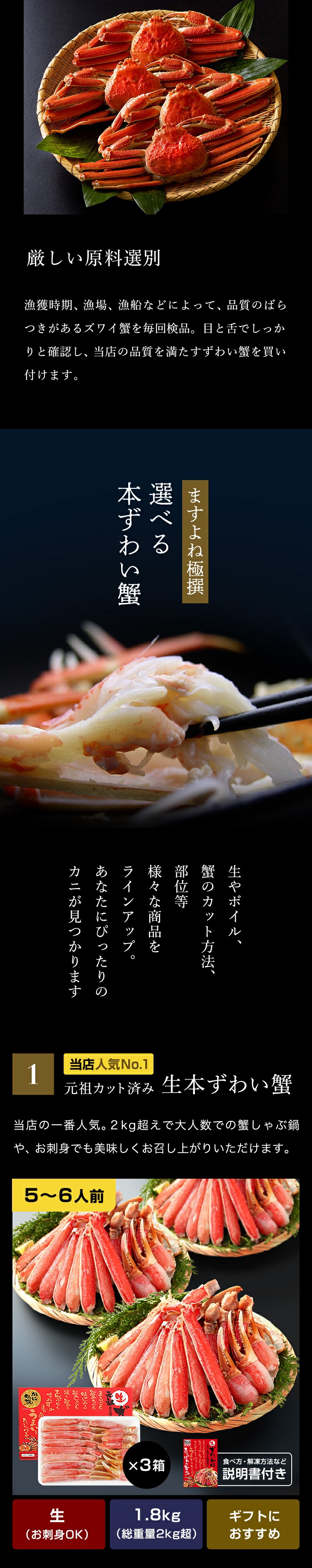 ■01.元祖カット済み生本ずわい蟹
